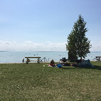 Családias hangulatú, árnyas, gondozott strand Balatonalmádi keleti felén, a balatoni kerékpárút mentén. Ingyenes parkoló, ingyenes animáció (péntek-vasárnap 9.00-13.00), kerékpártároló, játszótér, strandröplabda-pálya és ping-pong asztal áll a vendégek rendelkezésére. Lehetőség van vízi bicikli bérlésére.