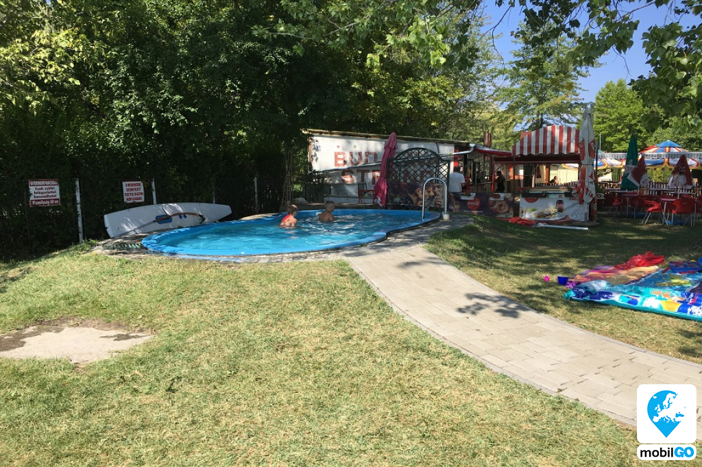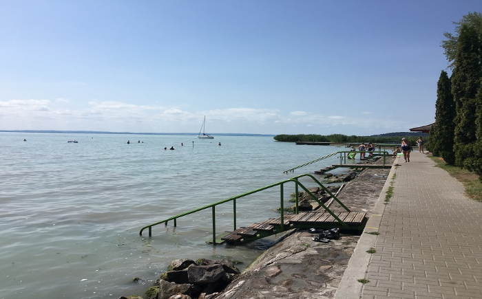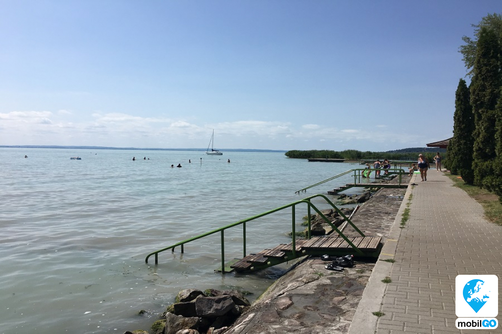 Balatonalmádi keleti felén, a balatoni kerékpárút mentén található a Budatava strandfürdő.