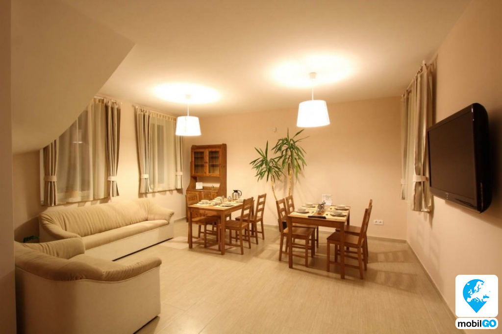 A ház kétágyas szobákkal rendelkezik. A hét szobából 3-hoz tartozik saját fürdőszoba, a másik két-két szobához egy-egy közös fürdőszoba áll rendelkezésre. Vendégeink részére a WiFi térités-mentes. A két konyhát vendégeink igényeik szerint használhatják. A szobák önállóan riaszthatók, ha igény van rá. Az egész apartman-ház füstjelzővel van ellátva. (A tűzjelző riasztása 50.000 Ft büntetést von maga után.) Vendégeink gépjárműveit kamera “védi”.