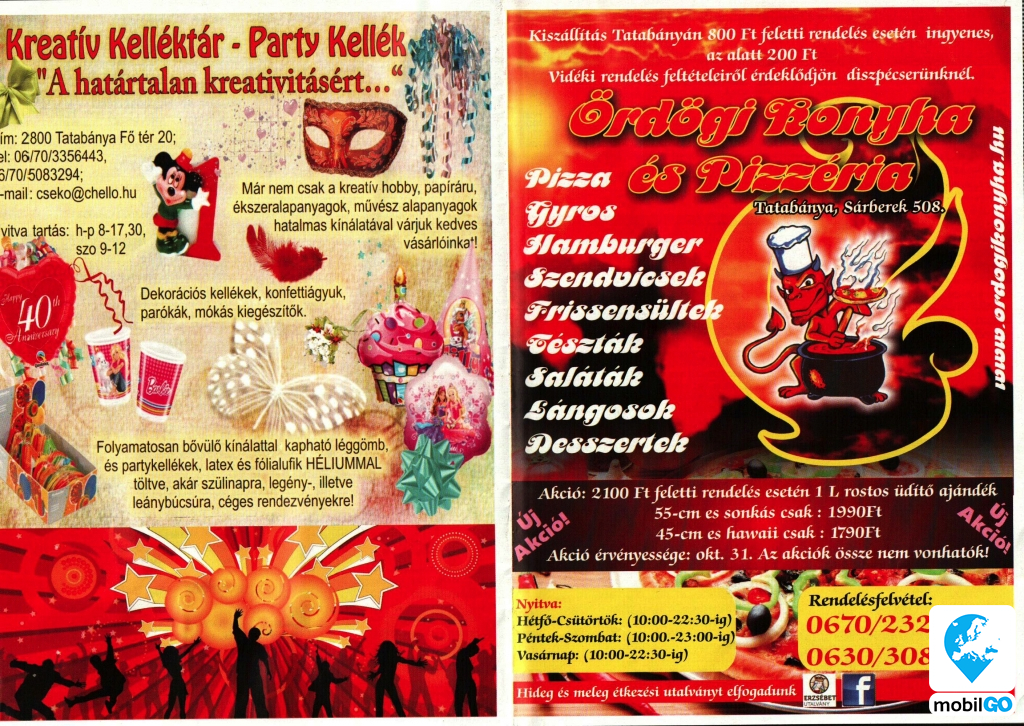 Tatabánya legújabb pizzériája, Pizza, Gyros, Hamburger, Szendvicsek, Frissensültek, Tészták, Saláták, Lángosok, Desszertek