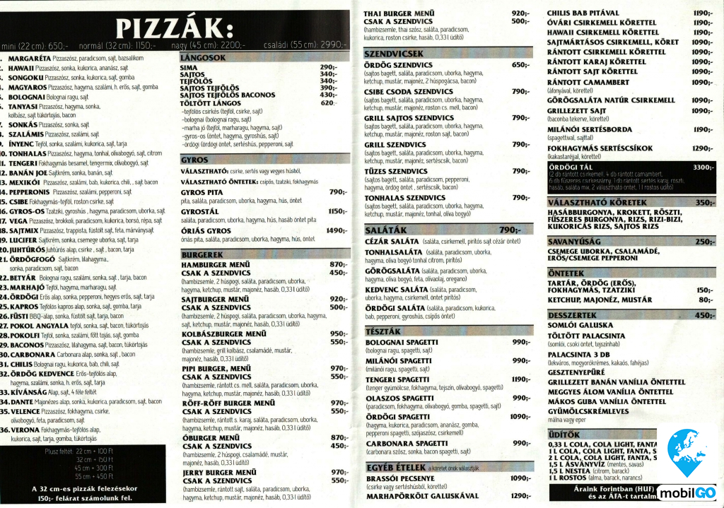 , az alatt 200ft. Vidéki rendelés feltételeiről érdeklődjön diszpécserünknél. Pizza, Gyros, Hamburger, Szendvicsek, Frissensültek, Tészták, Saláták, Lángosok, Desszertek