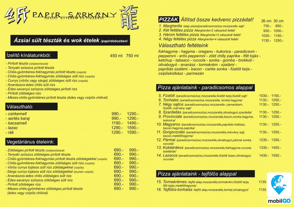 A Papír Sárkány Étterem az ételeket mindíg frissen,kizárólag rendelésre készítík el.