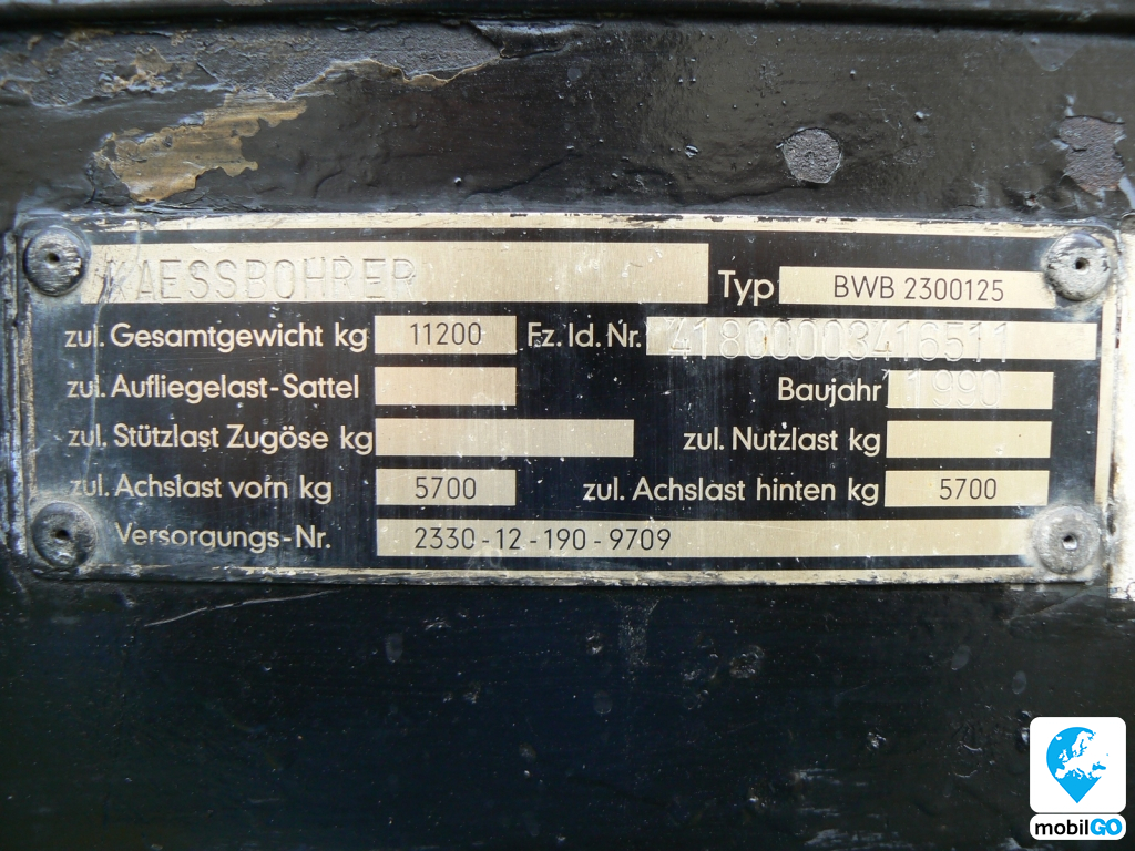 Gyártó: Kässbohrer Futásteljesítmény: 2-10000 km Típus: BWB Felépítmény H×SZ: 6100×2420 mm Önsúly: 4200 kg Össztömeg: 11200 kg Pótkocsi fék: 2 körös Gumiméret: 10 R 22.5 Évjárat: 1987-1990