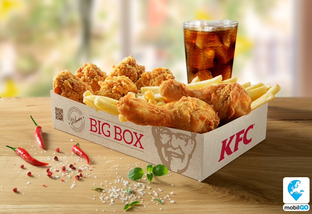 Egy megunhatatlan Big Box. Két darab, kézzel panírozott Kentucky csirkerész, melyeket röviddel azelőtt készítünk el, hogy a dobozba kerülnének. Mellettük öt darab, ropogós és jellegzetesen csípős Hot Wings csirkeszárnyat, normál adag sültburgonyát és újratölthető üdítőt is tartalmaz ez a Box. Ilyen egy stílusos és kiadós főétkezés.