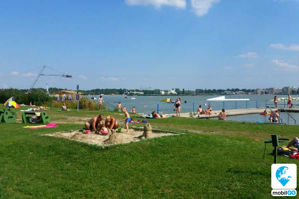 wakeboard pálya. Strand belépőt nem kell fizetni , de a parkolásért kell fizetni.